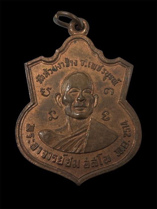 เหรียญหลวงพ่อทบและพระอาจารย์ชม วัดห้วยงาช้าง เนื้อทองแดง ปี 2514 ผิวไฟสวยๆครับ |