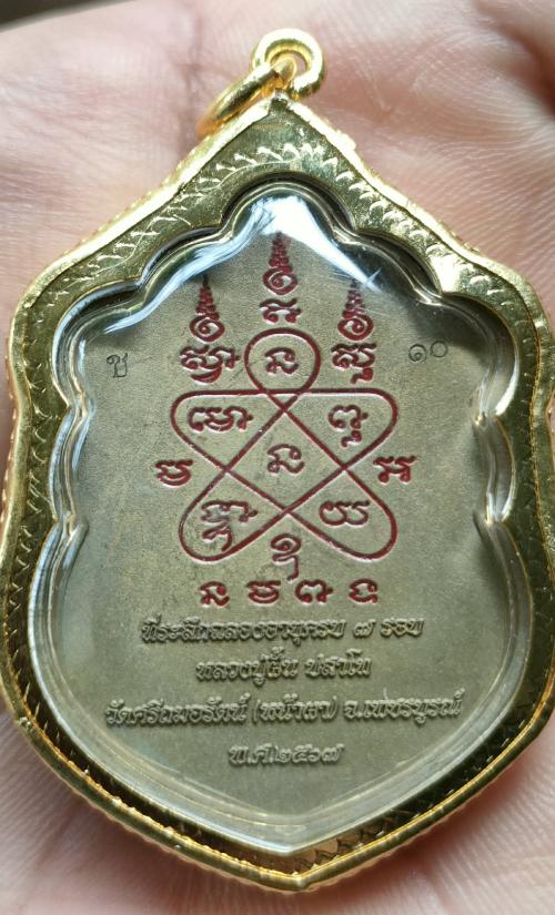 ชื่อพระเครื่อง เหรียญเสมา ที่ระลึกฉลองอายุครบ๗รอบ หลวงปู่ฝั้น ปสาโท วัดศรีถมอรัตน์(วัดหน้าผา) เพชรบูรณ์ เนื้อมหาชนวน ตอก๗รอบ ฝังพลอย หลังยันต์ห้ายาแดง เลี่ยมกรอบชุบทอง เลข ๑๐ พร้อมกล่อง ตอก๗รอบตรงรุ่นตรงวาระ น่าเก็บ