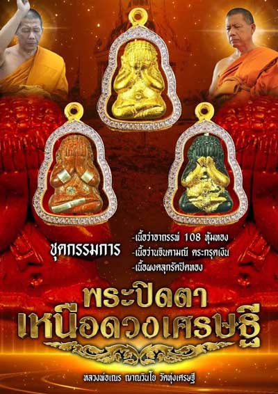 พระปิดตาเหนือดวงเศรษฐี ชุดกรรมการซีลเดิม หลวงพ่อเณร ญาณวินโย วัดทุ่งเศรษฐี กรุงเทพฯ หลวงปู่มหาศิลา หลวงปู่เวิน พระอาจารย์ต้อม หลวงปู่มหาตุ่ม ร่วมปลุกเสก |