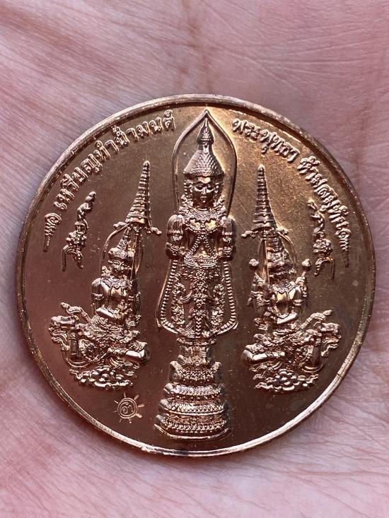 เหรียญทำน้ำมนต์ พระพิชัยสงคราม (พระปางห้ามสมุทร(ห้ามทุกข์โศกโรคภัยอันตราย)) หลัง ยันต์มหาอริยโสฬส เนื้อทองแดง(ผสมชนวน) ปี2564 หลวงพ่อเล็ก วัดท่าขนุน อฐิษฐานจิตปลุกเสก (พิธีพิชัยสงครามโบราณ) สวยครับ รับประกันตามกฎ |