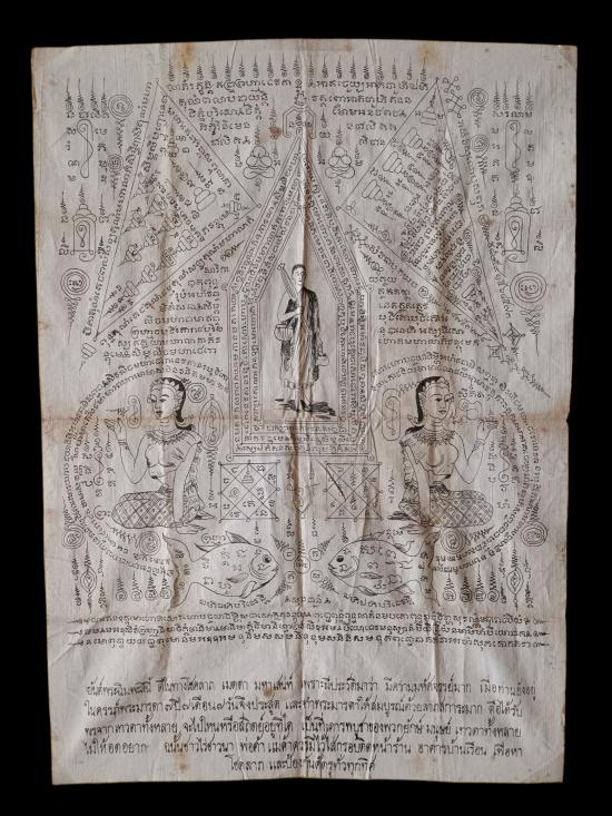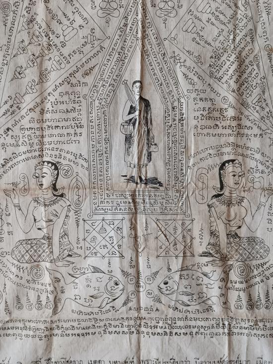 ผ้ายันต์ เก่า ไม่ทราบที่ ขนาด 13.5 x 18.5 นิ้ว |