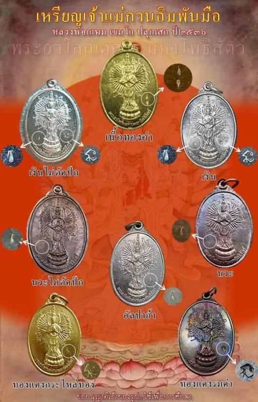 เหรียญพระอวโลกิเตศวร เจ้าแม่อวนกิมพันมือ หลวงพ่อเกษม เขมโก ปี ุ2536