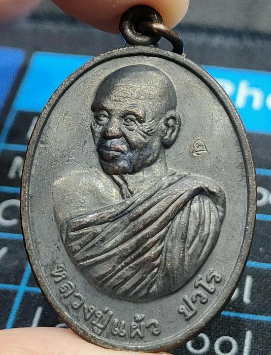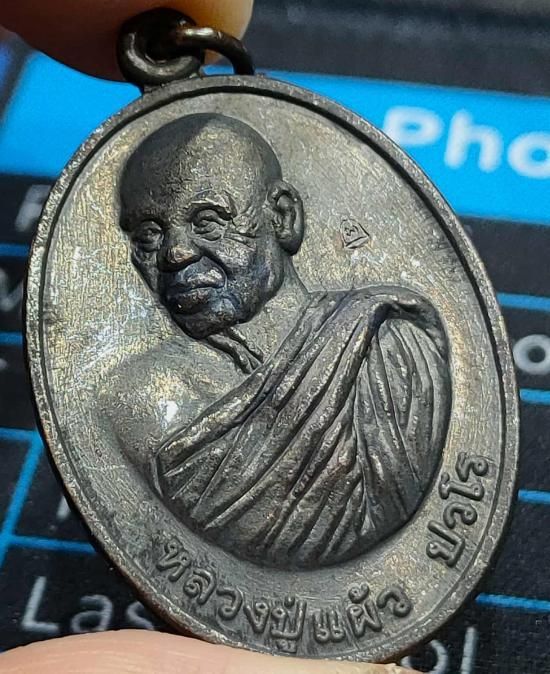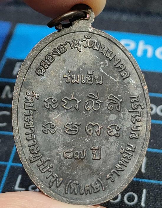 หลวงปู่แผ้ว ฉลองอายุวัฒนมงคล 87 ปี เนื้อทองแดงรมดำ ตอกโค๊ต ออกวัดรางหมัน สร้างปี 2552 |