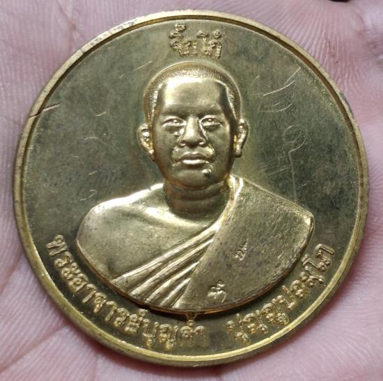 เหรียญจิ๊กโก๋ หลวงพ่อบุญค้ำ วัดชัยเภรีย์ จ.สุพรรณบุรี เนื้อทองเหลือง มีจาร |