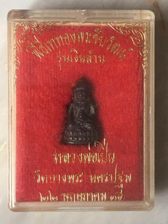 พระชัยวัฒน์รุ่นเงินล้าน หลวงพ่อเปิ่น เนื้อนวโลหะ ปี 2535 สภาพสวยเก็บเก่าในกล่องเดิม
