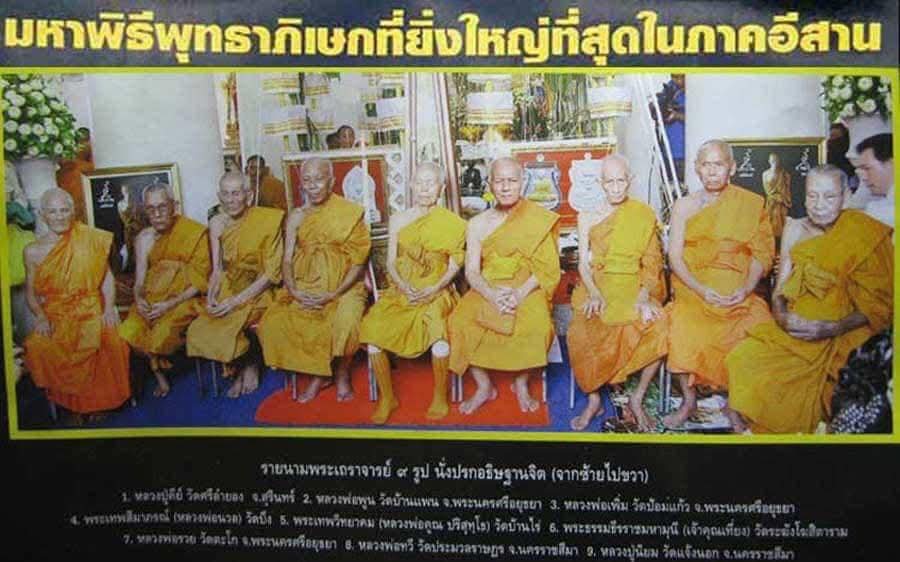 หลวงพ่อรวย หลวงปู่เพิ่ม หลวงพ่อพูน หลวงปู่หงษ์ หลวงพ่อทวี หลวงปู่นิยม หลวงปู่คีย์ เจ้าคุณเที่ยง เจ้าอาวาสวัดระฆัง ร่วมพิธีพุทธาภิเษก