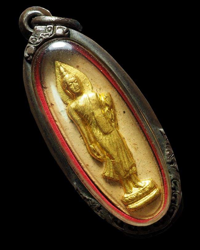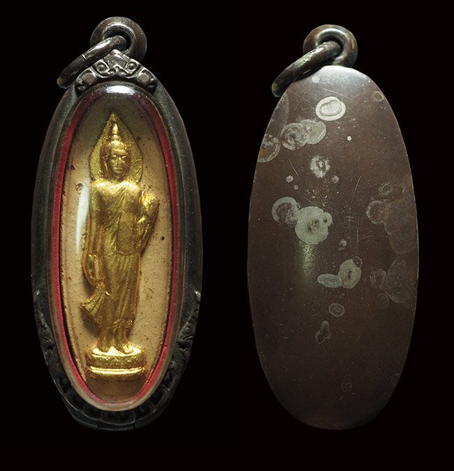 พระพุทธ 25 ศตวรรษ เนื้อดิน ปิดทองเลี่ยมตลับเงินแท้ ......................100