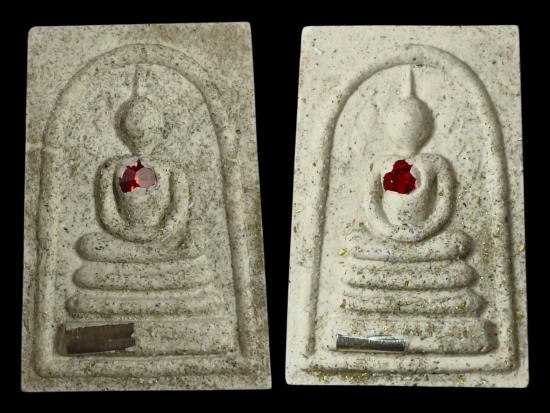 พระสมเด็จปรกโพธิ์หลวงปู่หงษ์ พรหมปัญโญ รุ่นฉลองอุโบสถ ปี 50 ผงตะไบทองกระจายทั่วทั้งด้านหน้าและด้านหลัง+ฝังตะกรุดเงิน+ฝังพลอยแดง สวยมากๆจำนวน 2 องค์พระนอนกล่องวัดใจเคาะแรกแดงครับ |