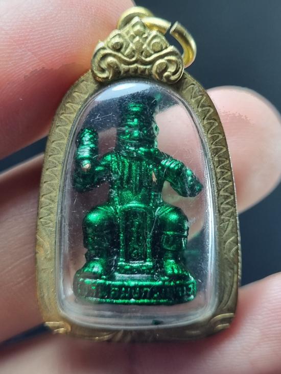 ชื่อพระเครื่อง วัดใจเคาะเดียว....120.....รูปหล่อเทพมังกรเขียว(แชเล้งเอี๊ย) วัดทิพย์วารีวิหาร เลี่ยมเดิมจากวัด