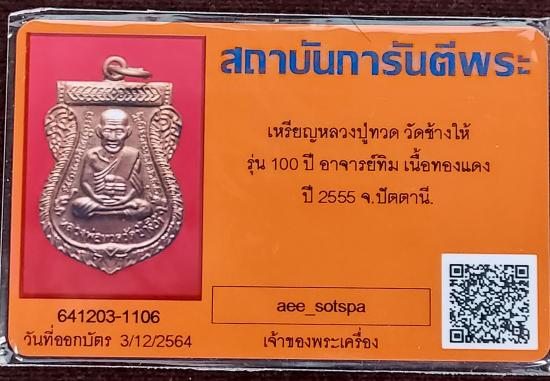 ู^_^ คัดสวย ^_^ เหรียญเสมาหลวงปู่ทวด 100 ปี (( รุ่นเสาร์ 5 มหามงคล )) ปี 2555 เนื้อทองแดงผิวไฟ สภาพสวยเดิมๆพร้อมกล่อง พร้อมบัตรรับรอง ราคาเบาๆครับ