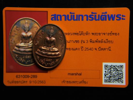 วัดใจ เหรียญหลวงพ่อโต๊ะหัก หลังเรียบ อาจารย์ทอง วัดสำเภาเชย ปัตตานี เนื้อทองแดง ปี2540 พร้อมบัตรG เช่าได้สบายใจ #7 |