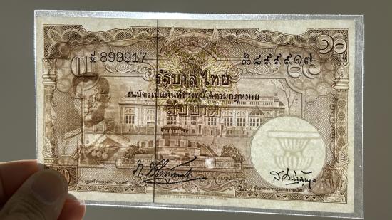 ธนบัตร 10 บาท ร.9 โทมัส ลายน้ำพาน เลขสวยๆ ตอง999 กลาง