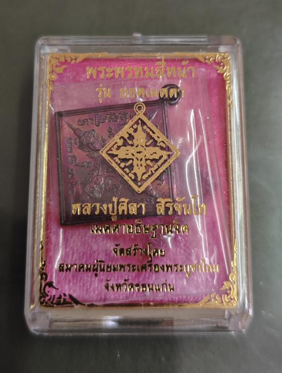 "วัดใจ แดง100" เหรียญพระพรหมสี่หน้า รุ่นยอดเมตตา หลวงปู่ศิลา สิริจันโท เนื้อทองแดงผิวรุ้ง หมายเลข ๑๖๙๘ |