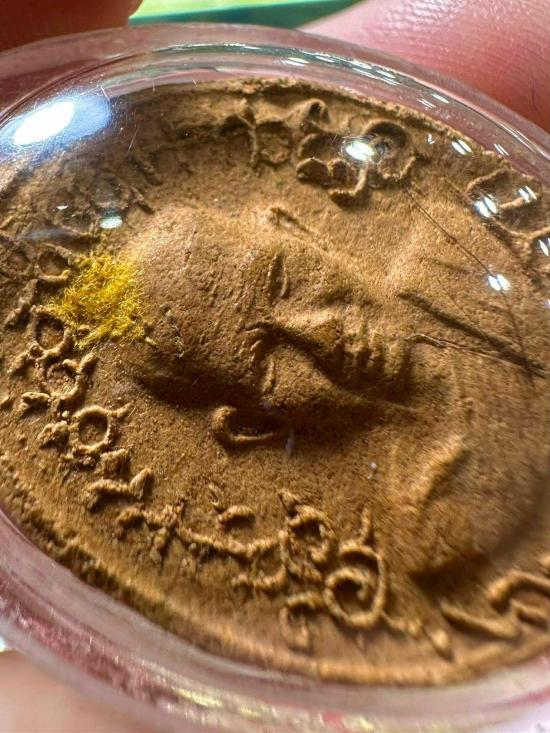 พระผงรูปเหมือน รุ่นไตรมาส หลวงพ่อเกษม เขมโก สร้างปี พ.ศ. 2518 เนื้อหามวลสารเข้มขลัง พร้อมเกศา ติดจีวรหลวงพ่อ