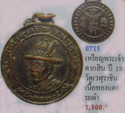 เหรียญพระเจ้าตากสินมหาราช วัดเวฬุราชิน ธนบุรี