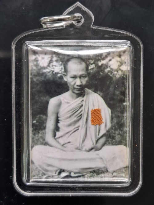 รูปภาพหลวงพ่อเกษม เขมโก หลังปั้มหมึก ติดจีวร ปี2518 ขนาด 1 นิ้ว (1) |