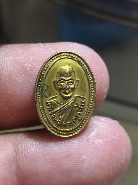 เหรียญรูปไข่เล็ก(หัวแหวน)พระครูเปิ้น วัดบ้านเก่า จ.ชลบุรี.พศ.2509 ทองแดงกะไหล่ทอง