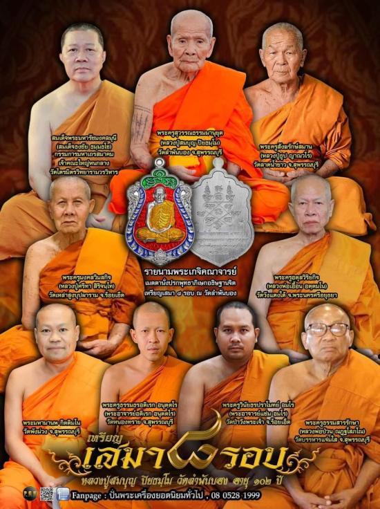 หลวงพ่อสมบุญ วัดลำพันบอง สุพรรณบุรี รุ่น เสมา 8 รอบ |