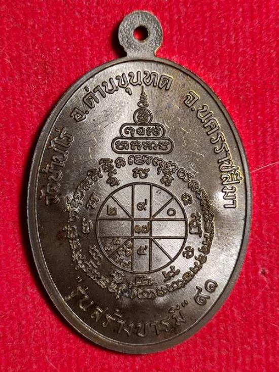 เหรียญหลวงพ่อคูณ ปริสุทโธ รุ่น สร้างบารมี 91 ตำนานผู้สร้างคนเดียวกันกับ ปี 19 รุ่นแรก ที่โด่งดังมาแล้ว ออกวัดบ้านไร่ ปี 57 เนื้อ ชนวน หมายเลข 697 มีจาร สภาพสวย เคาะเดียวแดง |