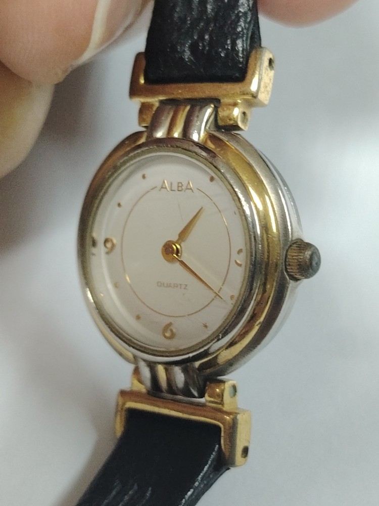 นาฬิกาผู้หญิง ALBA ขนาด24มิลรวมเม็ดมะยม สี2กษัตริย์ สายหนังเบิกใหม่ครื่องใช้งานเดินปกตืขึ้นข้อได้เลย ชอบเชิญครับเคาะเดียวแดง |