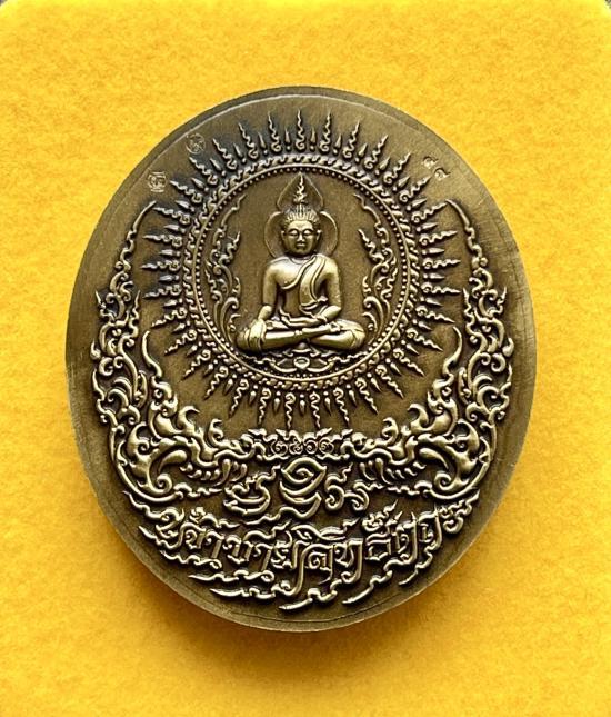 ล๊อกเก็ตสีซีเปียยันต์ทอง ประกบเหรียญพุทธศิลป์เนื้อทองเหลืองซาตินปัดเงา (แจกกรรมการ)