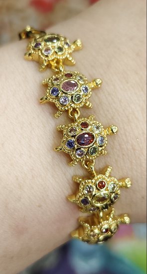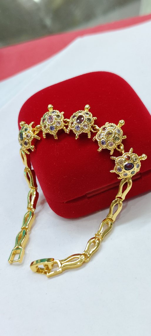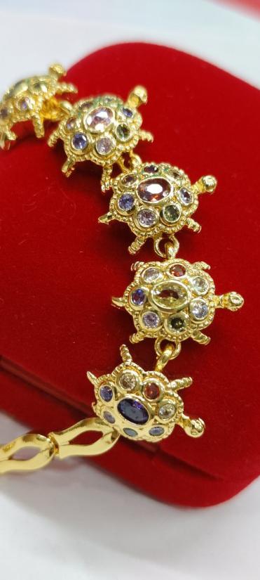 เทขาดทุน+ กำไลแขนนพเก้าเต่ายาว 7.นิ้ว งานจิวเวลลี่ชุบทองแท้ |