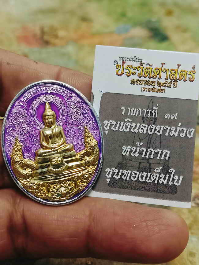 วัดใจ 100 เหรียญหลวงพ่อโสธร รุ่นประวัติศาสตร์หลวงพ่อโสธร ครบ 255 ปี วัดโสธรวราราม วรวิหาร ฉะเชิงเทรา ชุบเงิน ลงยาม่วง หน้ากากชุบทอง หมายเลข 51 กล่องเดิม |