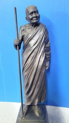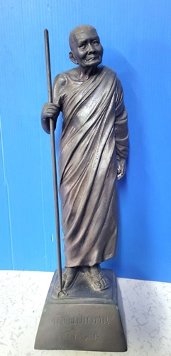 พระบูชารูปหล่อเหมือน หลวงปู่แหวน สุจิณโณ วัดดอยแม่ปั๋ง จ.เชียงใหม่ พิมพ์ยืนถือไม้เท้า |