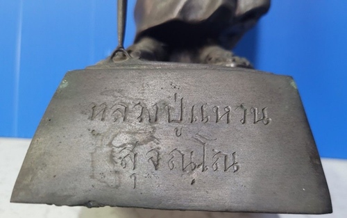 พระบูชาหลวงปู่แหวน สุจิณโณ พิมพ์ยืน ถือไม้เท้า ออกวัดสัมพันธวงศ์ กรุงเทพฯ ปี2547 สูง 11.5นิ้ว ฐานกว้าง 3.5นิ้ว กรรมการ หายากมาก ใต้ฐานมีวัตถุมงคลมีจีวร,ลูกอมและพระผง ของวัดสัมพันธวงศ์ และของหลวงปู่แหวน บรรจุอยู่ |