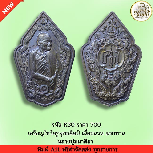 เหรียญพุทธศิลป์ไหว้ครู หลวงปู่มหาศิลา สิริจันโท จ.กาฬสินธุ์ 2564 เนื้อชนวนแจกทาน สภาพสวยคร้าบบบ |