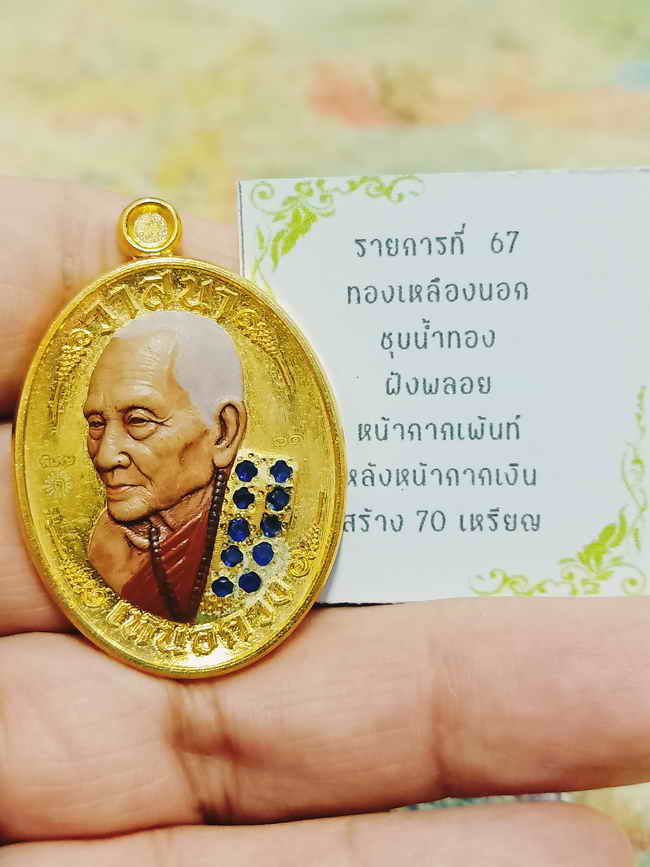 วัดใจ 150 เหรียญวาสนาเหนือดวง หลวงปู่เถิง ปัญญาวโร วัดบ้านอาลัย จ.ศรีสะเกษ 2567 ทองเหลืองนอก ชุบน้ำทอง ฝังพลอย หน้ากากเพ้น์ หลังหน้ากากเงิน หมายเลข 61 สร้าง 70 กล่องเดิม***สวยคม |