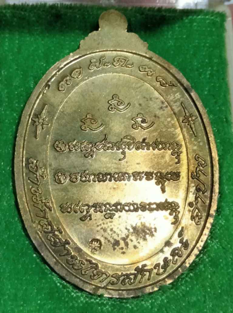 เหรียญ 7 รอบ หลวงพ่อเกษม เขมโก ปี 38 เนื้อฝาบาตร (ฝากล่องมีคราบกาวแห้งติดอยู่ครับ)