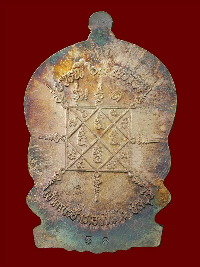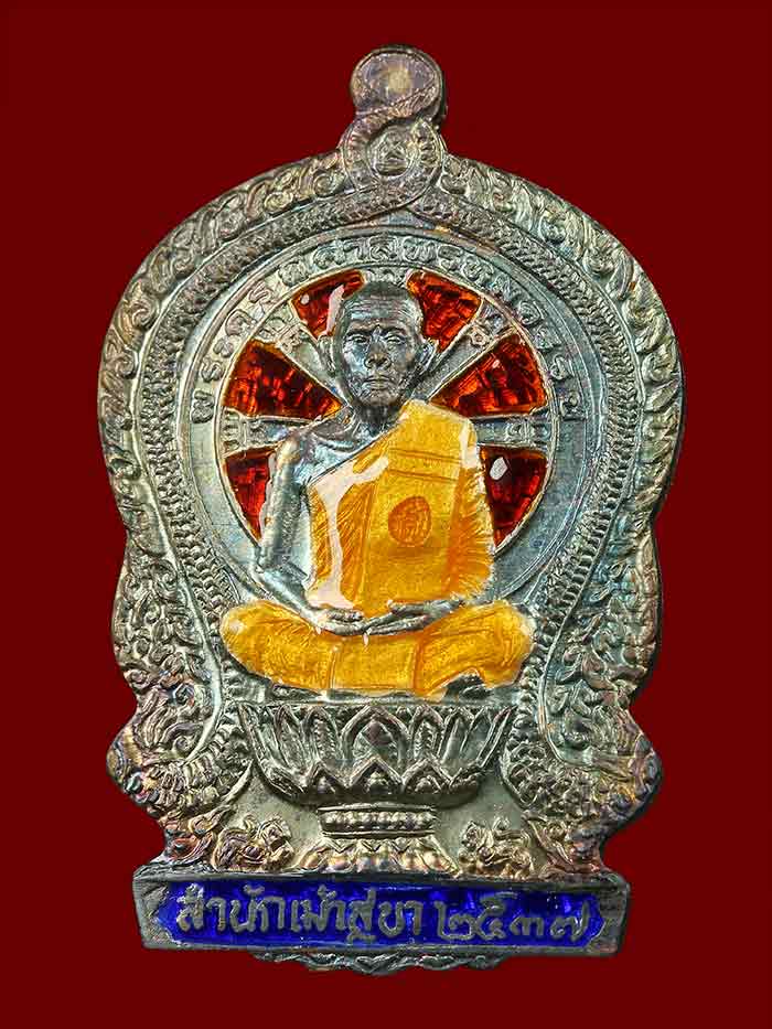 วัดใจ เหรียญนั่งพานรุ่นแรก หลวงพ่อสวัสดิ์ วัดเม้าสุขา เนื้อเงินลงยา ปี37 สภาพสวยเดิมตากล่อง เลข58
