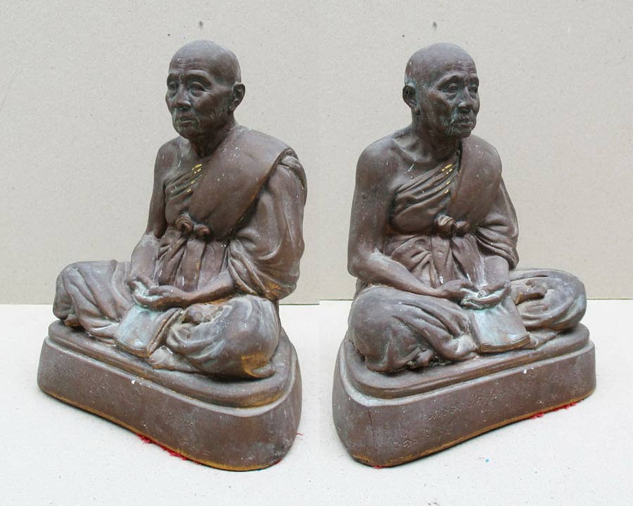 เนื้อปูนผสมผง ฐานขนาด 4 นิ้ว X 5.7 นิ้ว ใต้ฐานปิดผ้ายันต์แดงปั๊มยันต์ !!