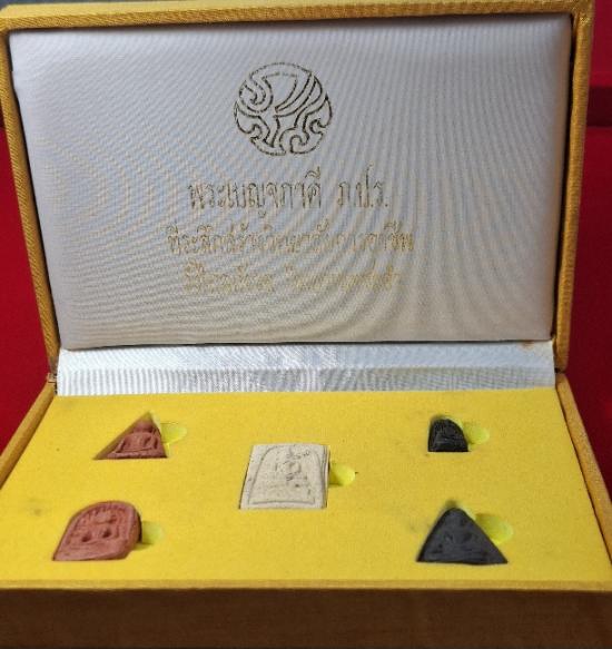 พระเบญจภาคี-ภปร. ที่ระลึกสร้างวิทยาลัยอาชีพวังไกลกังวล ปี2549 พระสภาพสวยมากๆทุกองค์เลยนะครับ และมาพร้อมกล่องเดิมๆด้วยนะครับ (กล่องชำรุดปิดไม่ค่อยสนิท) |