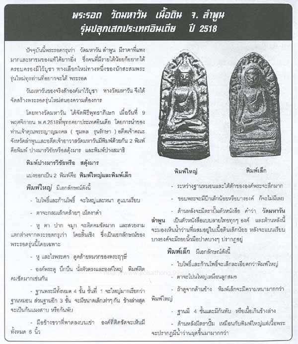 !!!...วัดใจ...พระรอดลำพูน วัดมหาวัน จ.ลำพูน ปี18 พิมพ์มารวิชัย เนื้อดินผสมผง พระรอดเก่า ที่แตกหัก ปลุกเศก ณ พุทธคยา อินเดีย หลวงปู่โต๊ะ หลวงพ่อกวย ร่วมปลุกเสก หายาก สภาพสวย กล่องเดิมๆครับ...!!! |