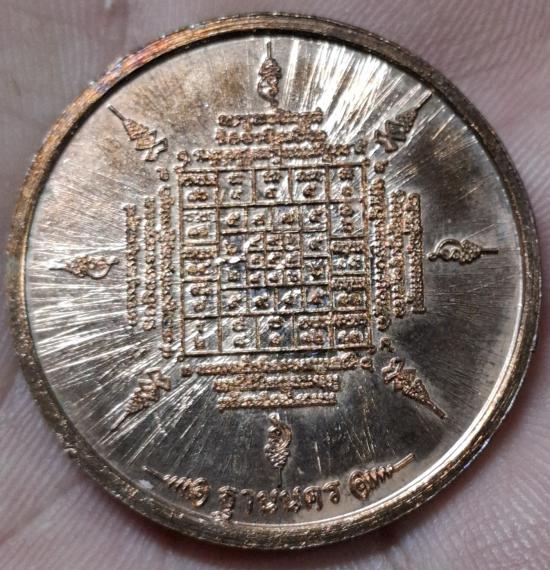 เหรียญตั้งบ้านตั้งเมือง หลังยันต์มหาอริยโสฬจใหญ่(ยันต์ฐานนคร คุุ้มครองหนุนดวงชะตาตั้งบ้านตั้งเมือง)หลวงพ่อเล็ก วัดท่าขนุน อฐิษฐานจิตปลุกเสก เนื้อทองแดง |