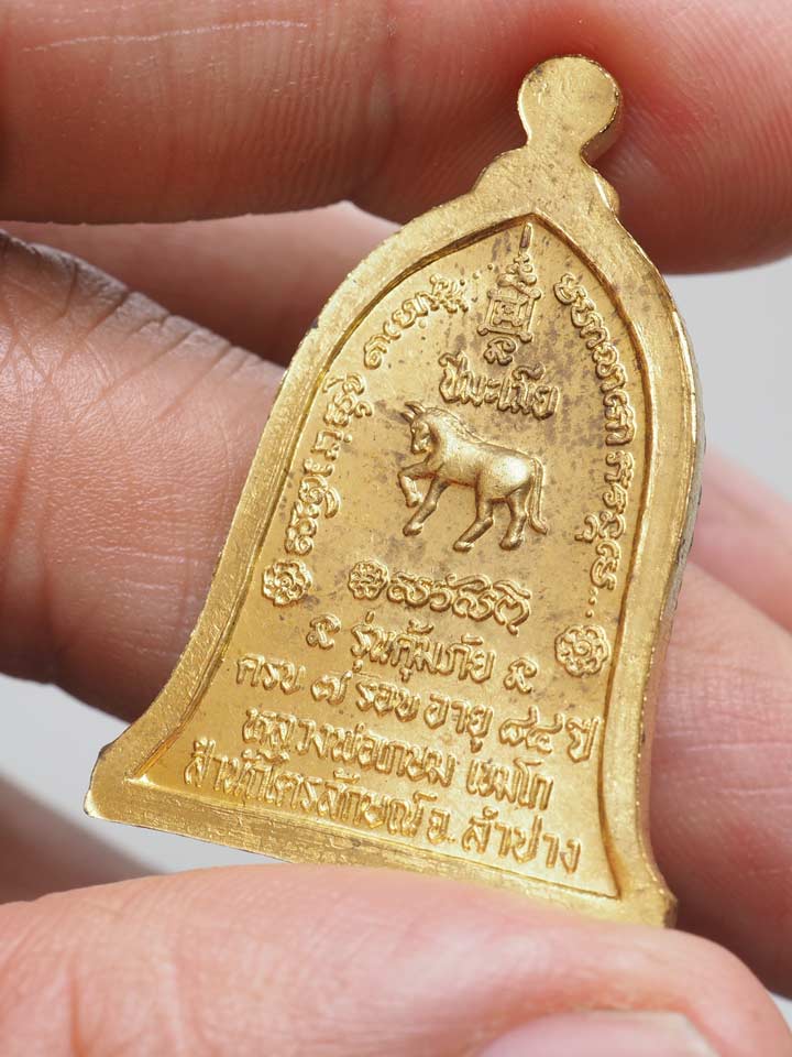 เคาะแรกแดง 140- เหรียญระฆัง รุ่นคุ้มภัยประจำปีเกิด ปีมะเมีย หลวงพ่อเกษม เขมโก ครบ 7 รอบ อายุ 84 ปี เนื้อทองเหลือง ปี 2538 พร้อมกล่องเดิมครับ