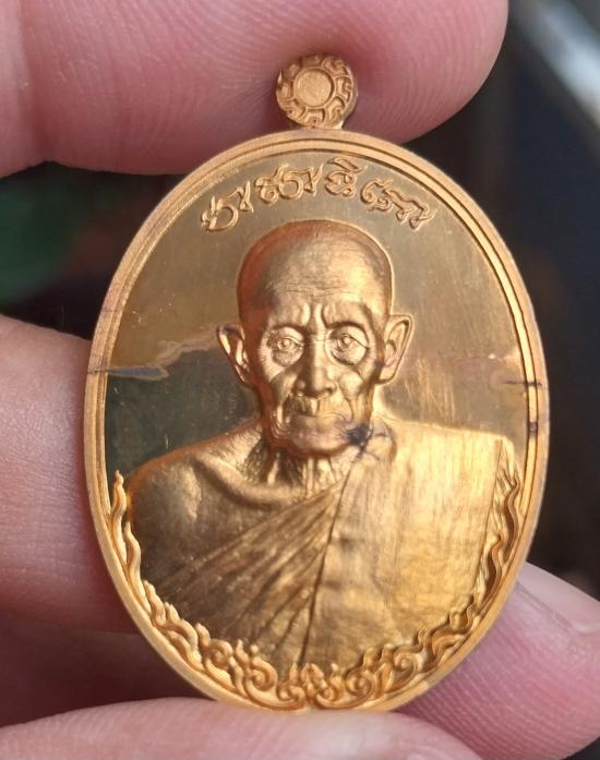 เหรียญหลวงพ่อรวย รุ่นอายุยืนปี55 เนื้อสัตตะ โค้ด 3383 พร้อมกล่องเดิม บล๊อคสังฆฏิแตก สภาพเหรียญมีรอยรานนิดหน่อยจากการปั้ม แต่โดยรวมยังสวยอยู่