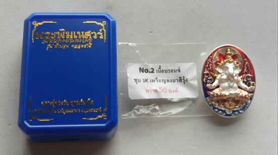 ชื่อพระเครื่อง วัดใจเคาะเดียวแดงจ้า เหรียญหล่อพุทธศิลป์พระพิฆเนศ รุ่นห้ามจนตลอดชาติ เนื้อบรอนซ์ชุบ3K เหรียญลงยาสีรุ้ง เคาะเดียวแดงจ้า