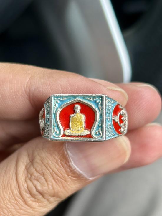 เคาะเดียว..แหวนเงินเท้ หลวงพ่อรวย วัดตะโก ปี2563 รุ่นรวย99 เนื้อเงินลงยาแดง-ฟ้า ((นิยม)) ไซต์ผู้ชาย ปรับขนาดได้ สภาพสวย พร้อมกล่องเดิม