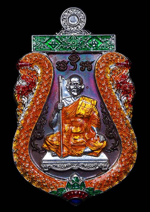 เนื้อทองแดงมันปูหน้ากากชุปเงิน ลงยาจีวรเพ้นท์ขอบทอง อุดมวลสารผงดวง 12 ราศี ผงเก่าหลวงปู่โต๊ะ สร้างน้อยเพียง 10 องค์เท่านั้นในโลก