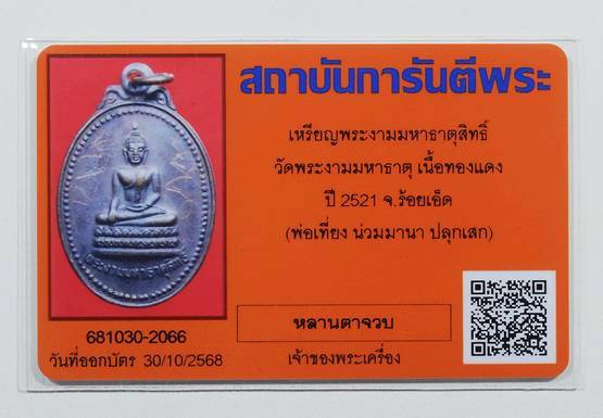 เหรียญพระงามมหาธาตุสิทธิ์ (คุณพ่อเที่ยง น่วมมานา ปลุกเสก) ปี21 สวยๆครับ