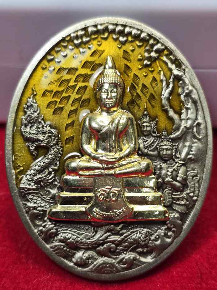 เหรียญหลวงพ่อโสธรรุ่นประวัติศาสตร์ครบรอบ 255 ปี วาระพิเศษ (วัดสร้าง) เนื้ออัลปาก้าชาตินลงยาเหลือง หน้ากากชุบทองคำ ตอกพิเศษ เลข333 พร้อมกล่องเดิม |