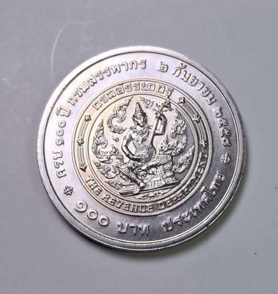 เหรียญ 100 บาท ที่ระลึกครบ 100 ปี กรมสรรพากร ปี 2558 ไม่ผ่านใช้งาน |