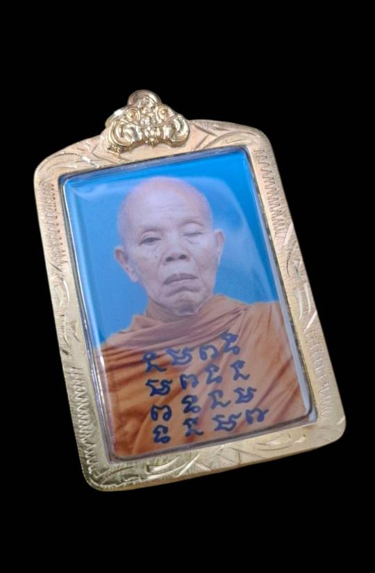 รูปถ่ายถาพสีหลวงพ่อคูณ วัดบ้านไร่ จ.นครราชสีมา ปี 2557 หลังตรายางวัดบ้านไร่+ติดจีวรเกษา ( พร้อมเลี่ยมกรอบไมค่อนสีทอง )