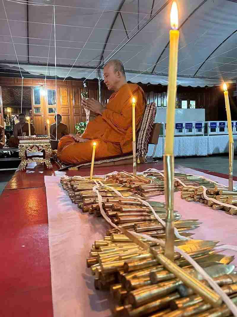 มีดหยุดมัจจุราช หลวงพ่อชำนาญ วัดชินวราราม ใบเนื้อสัมฤทธิ์มหาชนวน ด้ามเนื้อฝาบาตรมหาชน