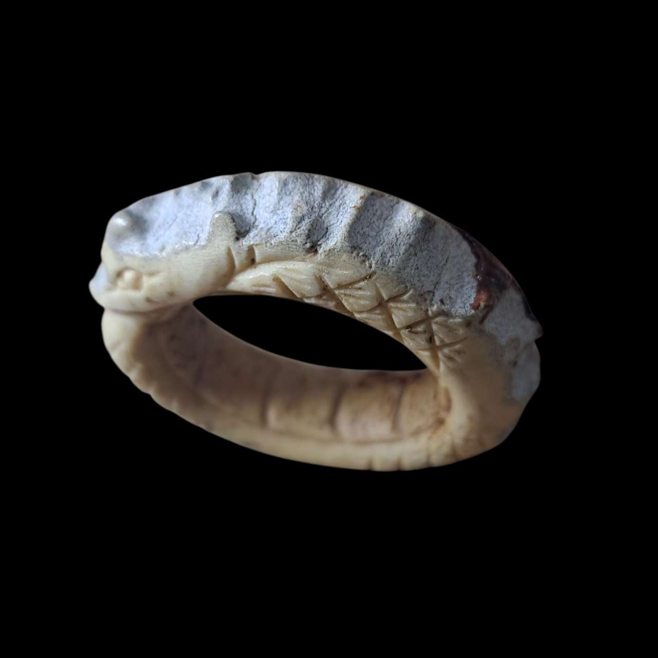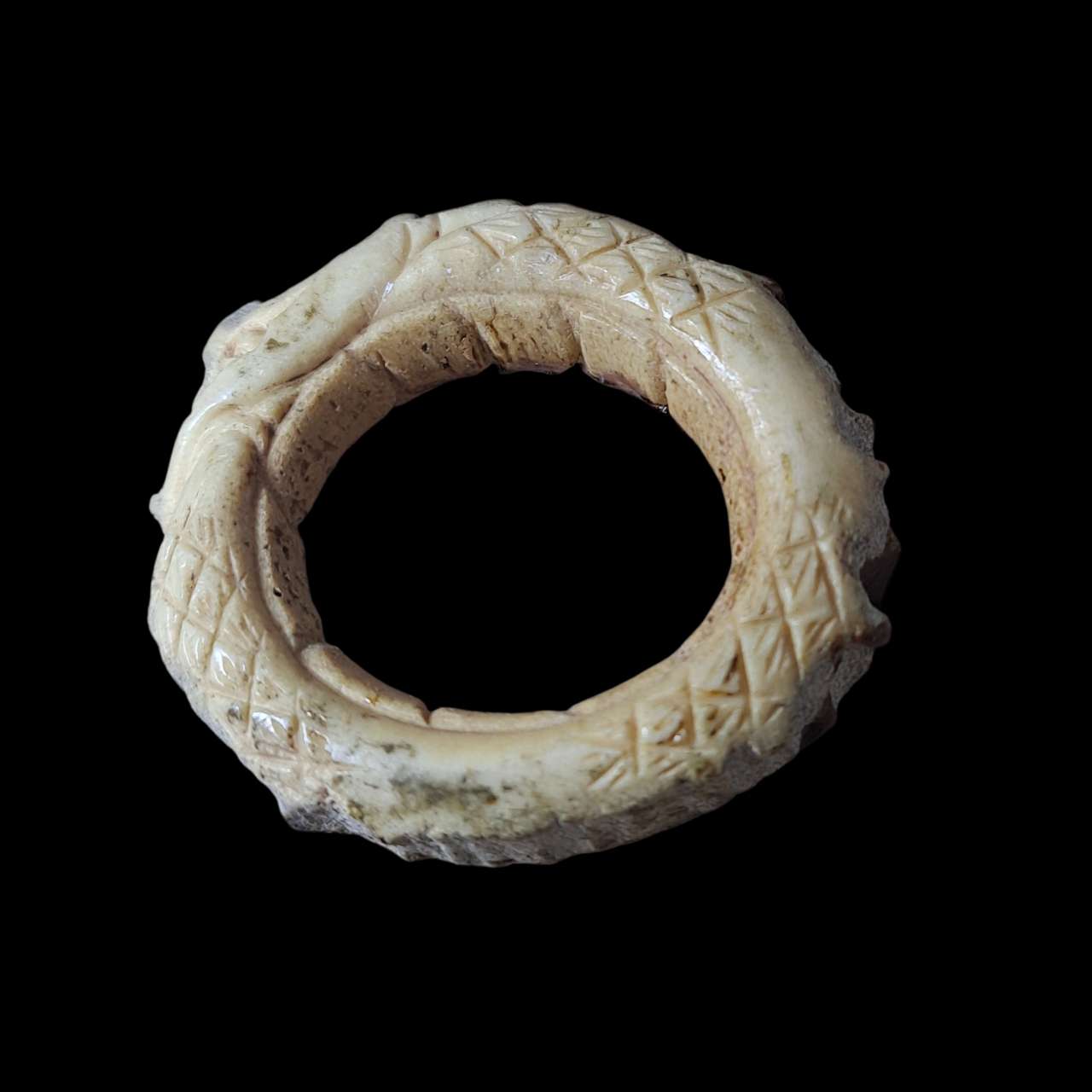 วัดใจ 9 บาท เครื่องรางทรงกลมลักษณะคล้ายแหวน แกะลาย ไม่ระบุวัสดุที่ใช้ทำ มีชำรุดตามภาพ |