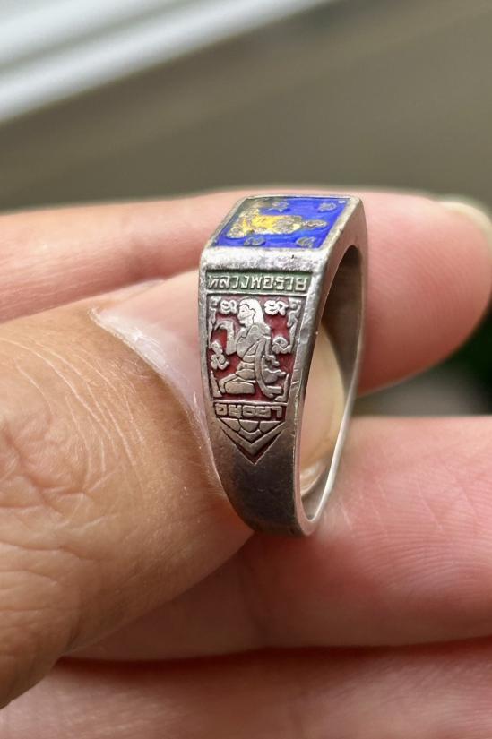 เคาะเดียว..แหวนหลวงพ่อรวย วัดตะโก จ.อยุธยา รุ่นเงินไหลมา ปี60 เนื้อเงินลงยา ไซส์ 54 พร้อมกล่องเดิม