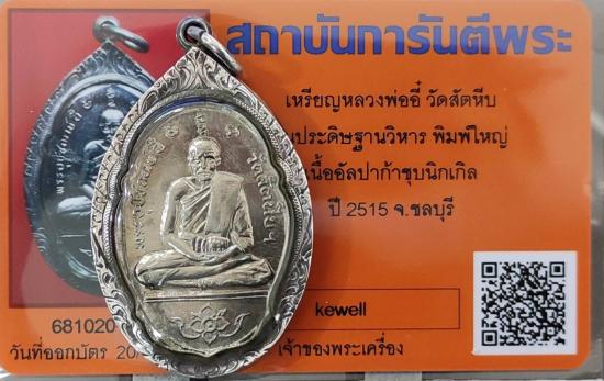 เหรียญหลวงพ่ออี๋ วัดสัตหีบ พิมพ์ใหญ่ เนื้ออัลปาก้าชุบนิกเกิ้ล ปี 2515 จังหวัดชลบุรี
